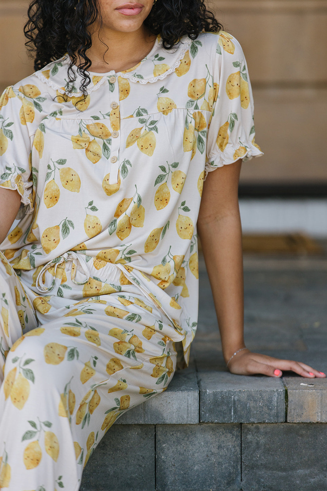 Meet your new favorite set from LATES, the Rounded Lace Collar sets! Designed for ultimate comfort with a classy, timeless style. This design features a sweet rounded lace collar and easy half button-up top(even works for nursing), paired with the perfect relaxed straight-leg pant. It's comfy, cute and just polished enough to wear from slow mornings to cozy nights.