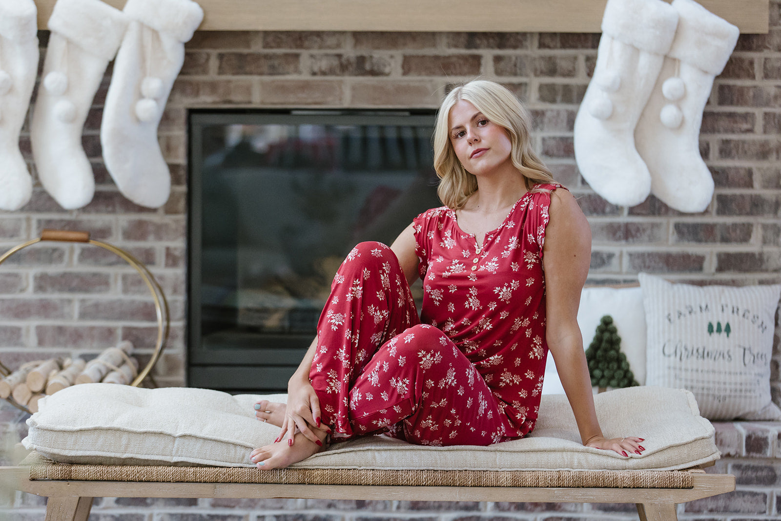 RUFFLE TANK PANT SET MODAL- Crimson Floral