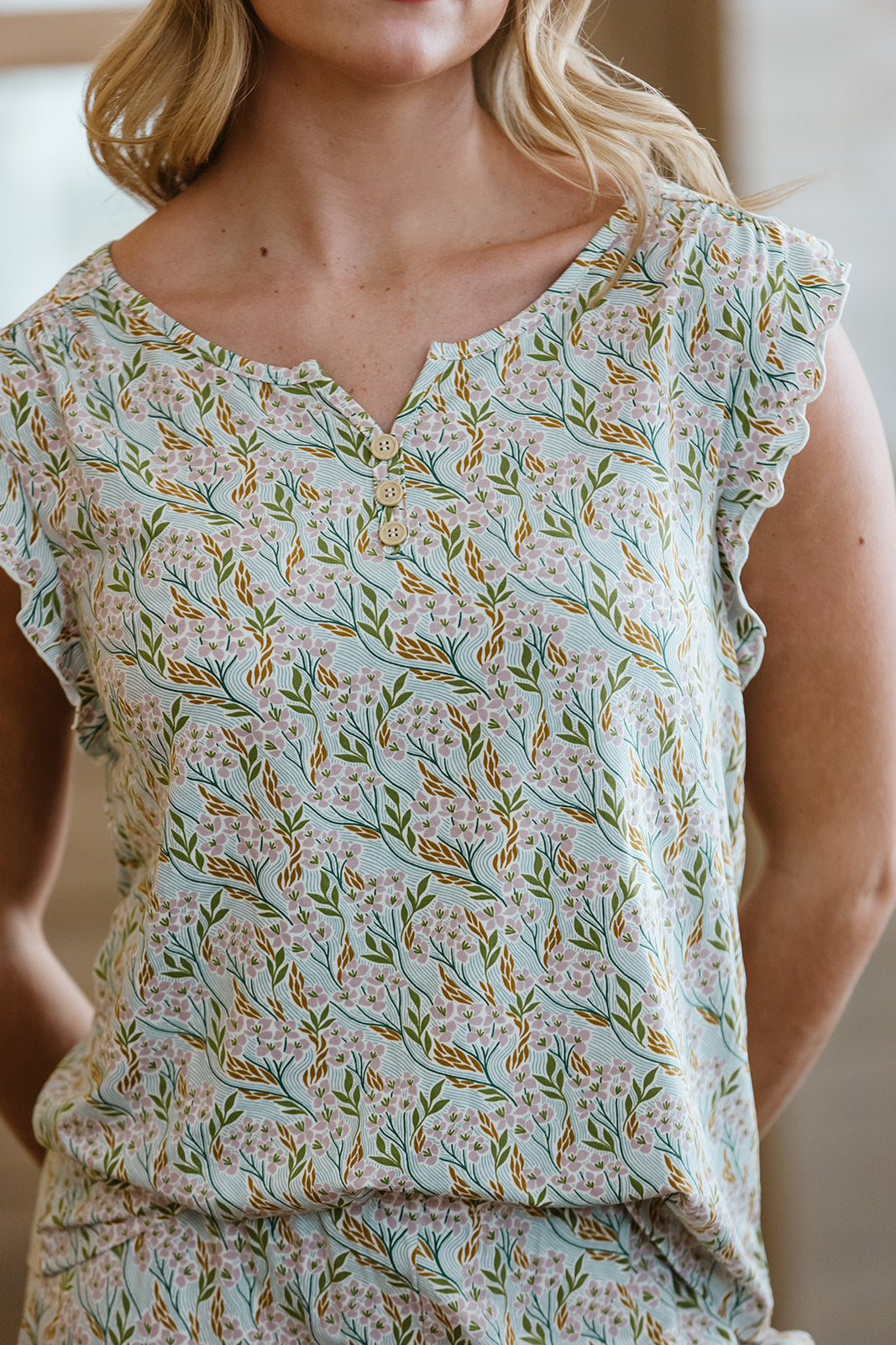 Introducing the LATEst addition to our dreamy collection: the soft and stylish ruffle set. This set has all the comfort of our classic style, with added details that make it truly stand out. Featuring a soft V-neck, ruffle tank top, and relaxed-fit straight leg, ruffle pant. Elastic waistband, no drawstring. These sets are crafted from the same buttery-soft modal you know and love. Whether you're lounging at home or stepping out for errands, this set offers the perfect blend of comfort and style.