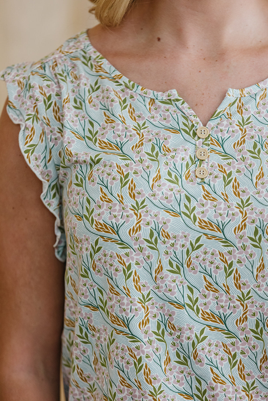 RUFFLE TANK SHORTS SET MODAL- Wispy Blue Floral
